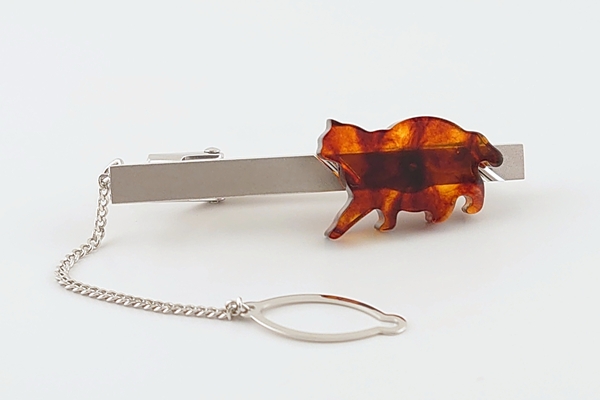 久慈琥珀博物館の名物ネコ「マイケル」のシルエットをかたどった、ネクタイピンです。