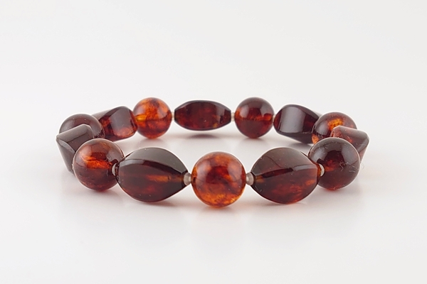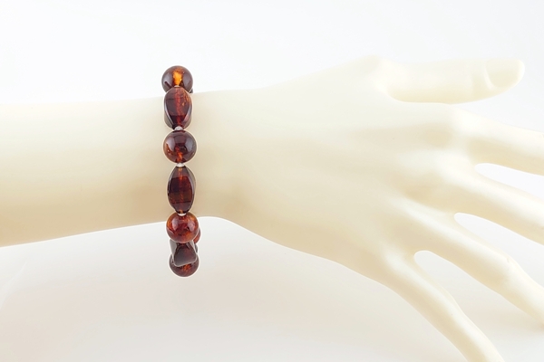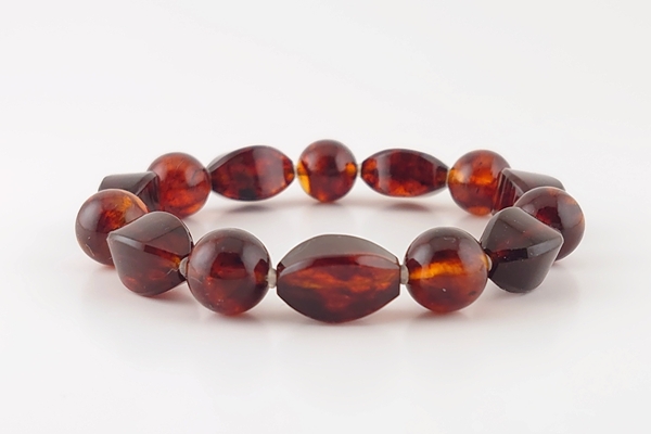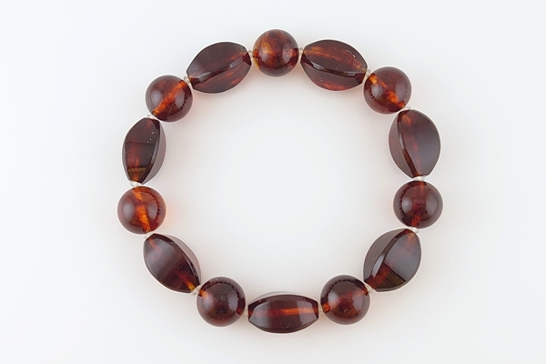 丸玉とカットパーツを組み合わせた、久慈産琥珀のブレスレットです。