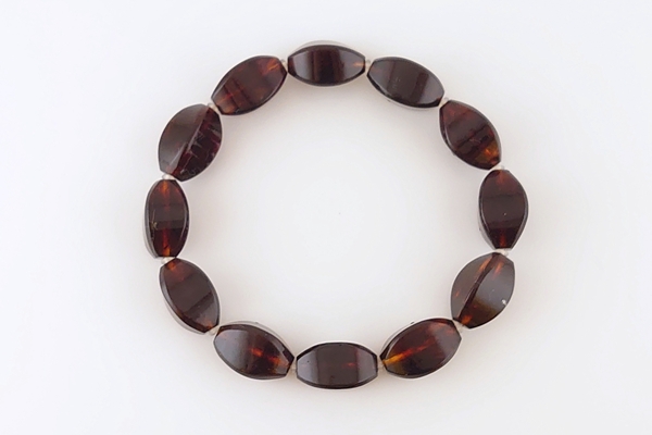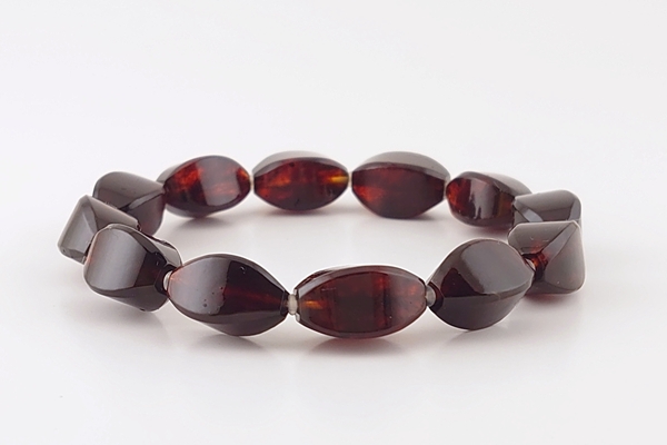 濃いめの色合いのカットパーツを組み上げた、久慈産琥珀のブレスレットです。