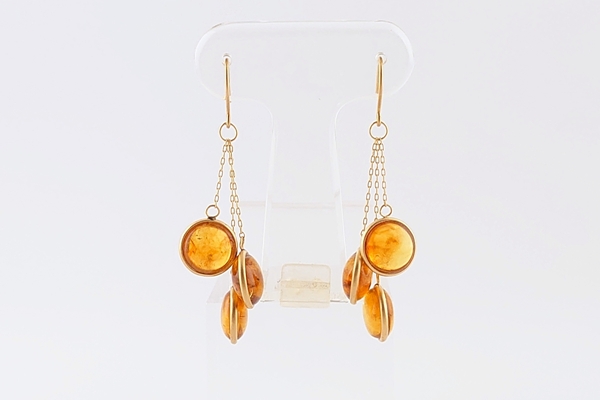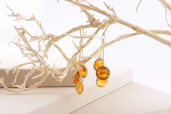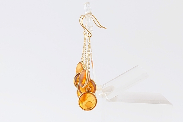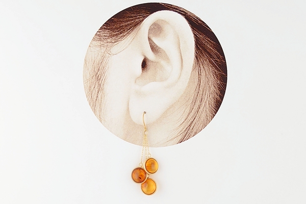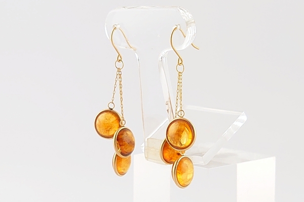 繊細な金枠にはめこまれた、同じトーンのリファインドアンバーが、瞬間ごとに異なる色合いで耳元を彩ります。