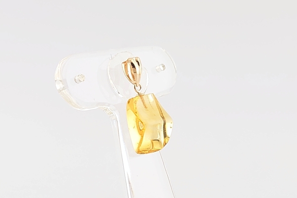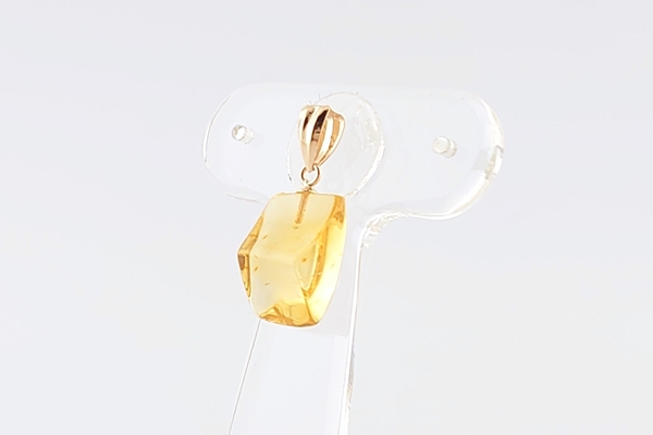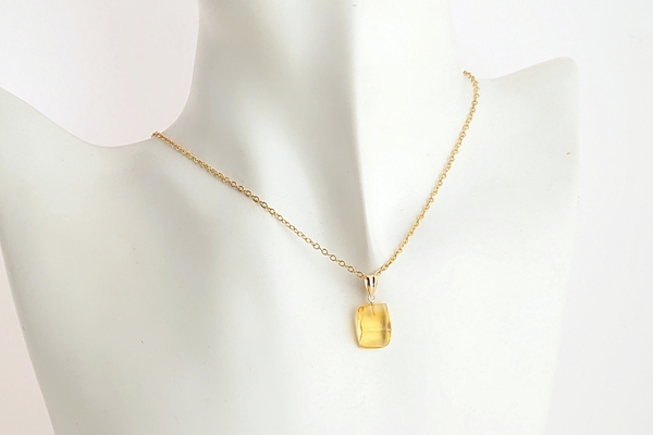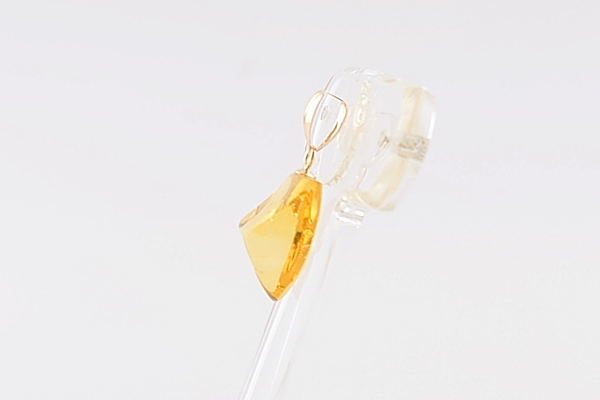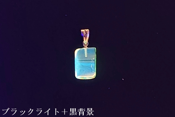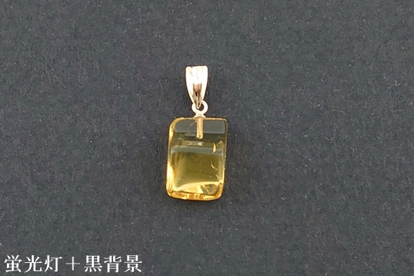 明るい雰囲気の淡いイエローの琥珀が、紫外線下では鮮やかな青色に変化します。